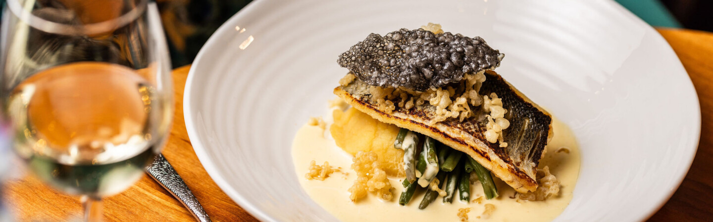 Breaded plaice fillet, fondant potato, wilted spinach, beurre blanc, sauce Gribiche